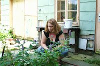 Eine alte Rose meiner Großmutter hatte ohnehin schon längere Zeit versucht, ins Atelier hinein zu schauen.