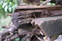 Wir dachten, das Tor fertig zusammenzubauen sei wohl keine Schwierigkeit. Doch nach einer näheren Begutachtung wurden wir eines besseren belehrt. Die Balken für den Rahmen waren leider nicht mehr brauchbar, da der Holzbock darin knabberte, und die Bretter waren in einer für uns unmöglichen Farbe gestrichen.
