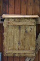Als Abschlussmeisterstück entwarf und baute meine Frau einen tollen Postkasten mit sehr grossen Einwurfschlitz damit die Kataloge nicht mehr am Boden landen.