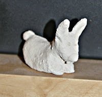 Dieses kleine Häschen ist erst mal ein schon schrühgebrannter Prototyp, aber ganz zufrieden bin ich mit ihm noch nicht ganz.