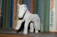 Das Atelier liegt noch im Winterschlaf, aber im Haus fertige ich derzeit kleine Hunde, Katzen und Pferde.