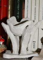 Ein paar Schlammvasen stehen auch wieder zum Trocknen am Bücherregal.