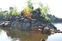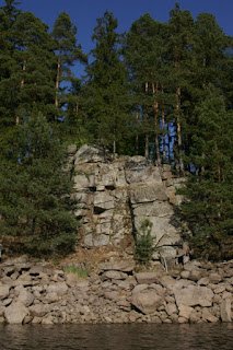 Als Highlight für die Kinder hatten wir noch eine Bootsfahrt auf dem See geplant. Wir mieteten uns ein Tretboot und die beiden „Männer“, mein Sohn und ich, traten in die Pedale. Ulrike saß mit er der Kleinen hinten und fotografierte eine Menge Steingesichter. Wir fuhren auch an der Bucht vorbei, wo wir an unserem Flitterwochenende gezeltet und gebadet hatten. Wir zeigten unseren Kindern die Felsformationen auf denen wir damals die Ruhe und Aussicht genossen haben. Und diesmal entdeckten wir immer mehr mystisch wirkende Steinskulpuren, die wie Artefakte einer sehr alten längst vergangenen Zeit erschienen.Klarerweise gab es zu dieser Zeit keinen See und diese Felsen, die durch Schnee, Wind und Wetter geformt wurden, waren in luftigen Höhen.