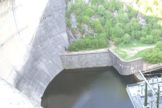 Nachdem wir zur Anlegestelle zurückgekehrt waren, gingen wir noch zur Staumauer wo mich ob der Höhe ein mulmiges Gefühl beschlich (69 Meter hoch laut Wikipedia ).