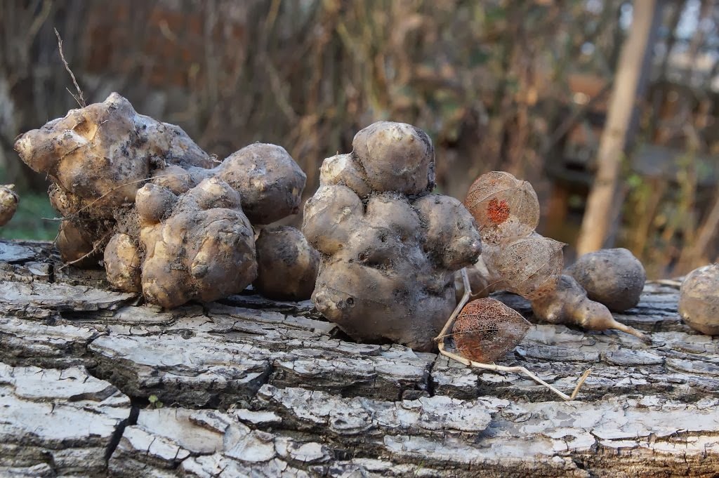 So nebenbei habe ich ein paar vergessene Erdäpfel gefunden. Beim Zusammenrechnen des Topinamburschnitts sind dann auch noch ein paar extra dicke Süßkartoffel aus dem Boden gehopst. Praktisch, wenn die Natur so gut wie selbst vorschlägt, was demnächst auf dem Speiseplan steht.