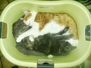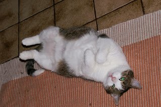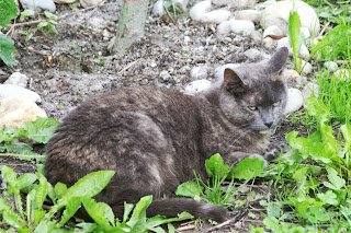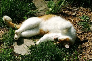 Samson geniest den von der Sonne angewärmten Stein im Hof. Nur im Wäschekorb mit Griselda ist es noch schöner. Katzing und Katzang 😉