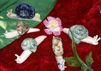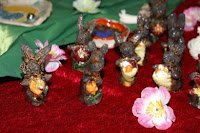 Sehr liebevoll hat sie ihre Schnecken (die Fühler sind bewundernswert dünn) und auch die kleinen Häschen, jedes ein Unikat, für sich arrangiert.