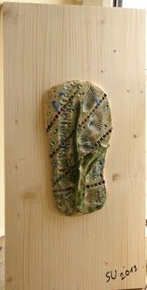Die Keramikbilder auf Holzplatte hat sie als ganz neuen kreativen Ausdruck, aber sehr stimmigen, da sie ja auch in allen erdenklichen Varianten malt, erfolgreich zu ihrer Palette hinzugefügt.