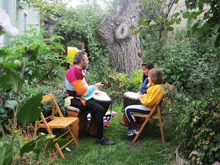 Immer wieder erklangen unsere Trommeln und lockten ein paar schaulustige Nachbarn an.