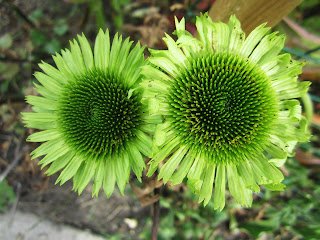 Grüne Echinaceablüten im Weinbogen