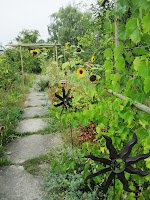 Mittelweg zwischen Weinstöcken, Birnenspindelbäumen, Chilis und Sonnenblumen – Permakultur life