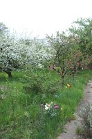 Buddeln in einem traumhaften Blütenmeer steht derzeit auf dem Arbeitsplan. Die Vegetation ist noch immer voll im Aufholen und alles schießt nur so aus dem Boden. Kirschen-, Äpfel-, Birnen-, Pfirsich- und Zwetschkenbäume stehen in voller Blüte.