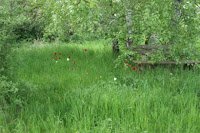 Hinten im Garten breiten sich die Tulpen, die einst meine Großmutter gepflanzt hatte, immer mehr in der Wiese aus. Ich liebe unseren Garten im Frühling!