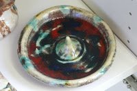 Das Spielen mit den Farben fasziniert mich noch immer. Außerdem experimentiere ich mit Tonschlamm und versuche mich an der Scheibe. Mit 40% Schamottanteil – wieder eine Herausforderung.