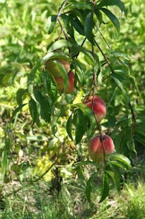 Aber auch unsere Pfirsichbäume sind heuer voll beladen. Da hab ich heuer zum Einkochen keine Lust und so gibt es die Früchte immer zwischendurch. Mjammi!