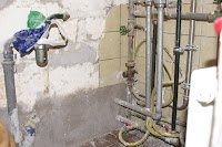 Thermeneinbaues halb abgeschlagen wurden, offene Wanddurchbrüche und Leitungen, die nicht in die Wand gelegt wurden und das Kanalrohr ist auch so „wunderhübsch“. Ausserdem hat es sich zur Rumpel- und Besenkammer entwickelt.