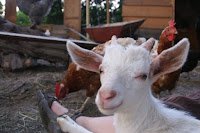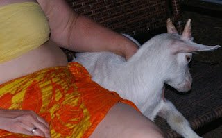 gibt, eine junge Geiß und ein gerade auf Heu umgestelltes Böckchen, die wegen