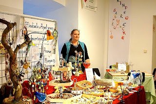 An meinem Stand konnten Eier bemalt und mit Glitzersteinen und Blumen beklebt, Anhänger aus Obstholz selbst geschliffen, bemalt und mit dem Brandeisen verziert und kleine Kunstwerke aus Ton angefertigt werden.