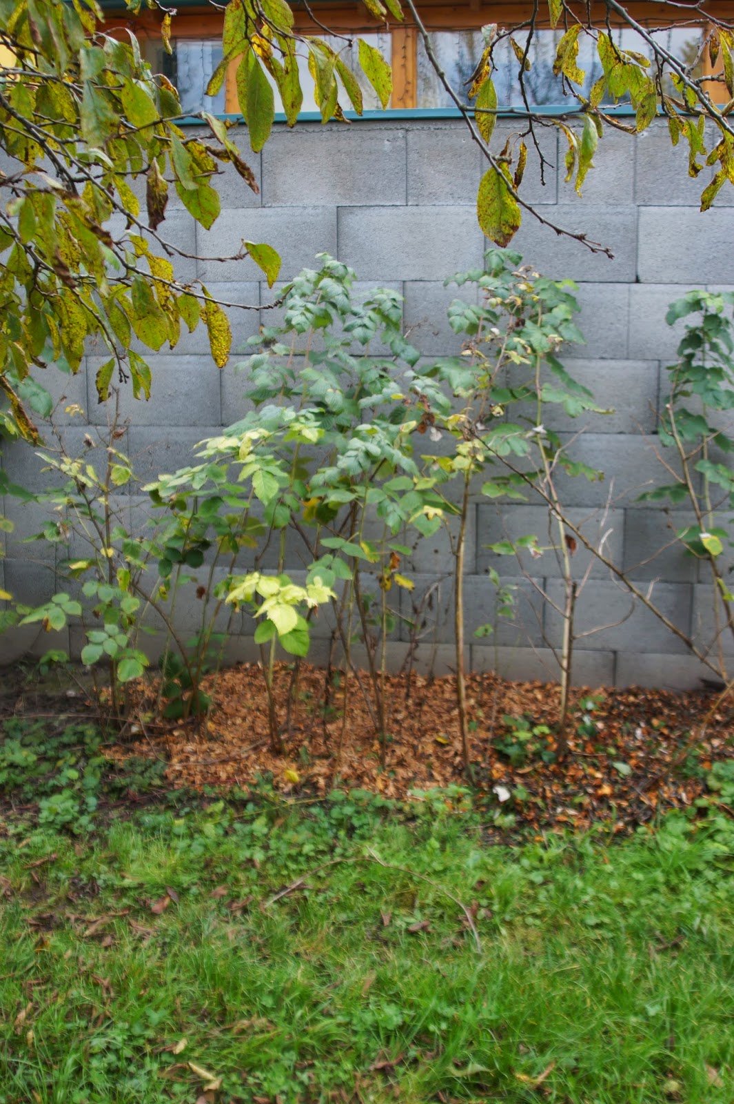 Heuer hat unser Nachbar eine hohe Mauer an unserer Grundstücksgrenze hochgezogen. 2,10 Meter ragen nun neben unseren Himbeeren hoch.