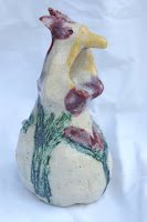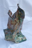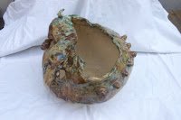 Hier sind wieder ein paar neue Stücke vom letzten Brand. Diesmal habe ich zwei große Pflanzgefäße für draussen aus weißem und roten Ton geformt. Überzogen sind sie mit Aschenglasur und etwas Kupferoxid.