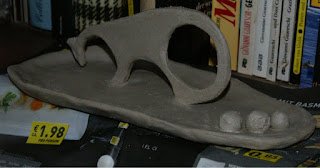 Das „Füllhorn“  wird, wenn es fertig gebrannt und glasiert ist, als Verzierung eines Blumenstabs in den Garten wandern.