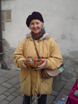 Dieses Jahr haben wir nicht wie immer im Gebäude sondern zum ersten Mal im Hof der Pfarre Heiligenstadt ausgestellt und mit Kindern gearbeitet. Bei sonnigem Wetter wurden Eier bemalt und beklebt, Anhänger gebastelt und auch einiges getöpfert. Einer Dame konnten wir ihre wunderschöne selbst gemachte Schale endlich überreichen.