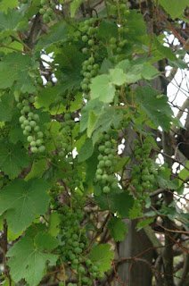 Sieht doch nett aus, oder? Diese hier wachsen über unsere Laube. Ein anderer Stock, wo ich vor sieben Jahren einfach ein paar Trauben unter einen Nussbaum gelegt habe, trägt heuer auch zum ersten mal. Ich bin schon gespannt, wie die schmecken werden. ich habe nämlich nach der langen Zeit keine Ahnung mehr, was das für Trauben waren.