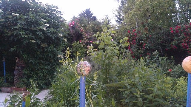 Im Vorgartenbereich wuchert kräftiges Grün.