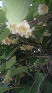 Aber auch im restlichen Garten tut sich nun schon so einiges.Die Kiwis haben unzählige Blüten. Wenn die alle reif werden…