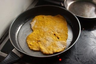Parallel dazu habe ich den Teig in 6 Portionen geteilt und mit dem Nudelwalker zu dünnen Fladen ausgerollt. Diese wurden mit Öl in der Pfanne gebraten.